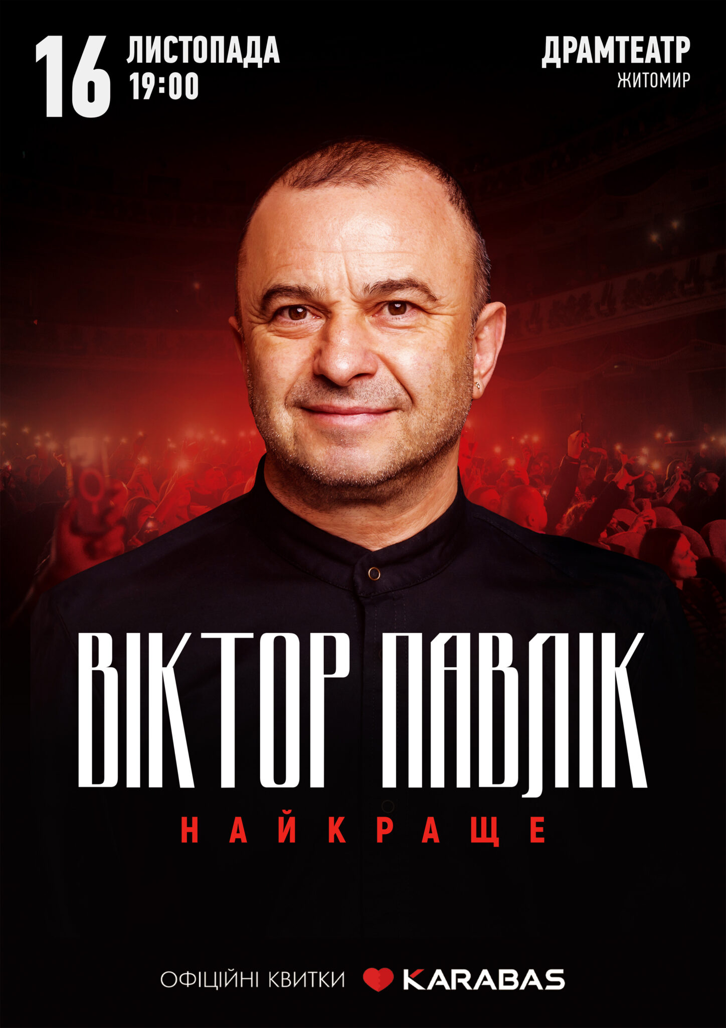 Квитки на концерт встигніть обрати на сайті https://zhytomyr.karabas.com/viktor-pavlik-naykrashche-8/order/