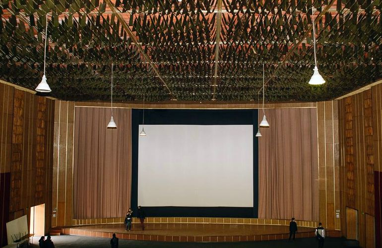 1966 рік. В Житомирі з’являється будівля з замахом на рекорд. Розпочнемо з того, що глядацька зала налічувала, уявіть собі, 498 посадкових місць. І це середина ХХ століття. Архітектурний стиль будівлі навіть має свою назву, а саме “соцреалізм”. Вестибюль виконаний не із дешевого сатенгіпсу, а з граніту і кубинського мармуру. Та величезний екран із вражаючими розмірами 20,8 х 9,3 м. І навіть в 21 столітті він може зазіхати на звання одного із найбільших в Україні екранів, після спальні “легітимного” в Межигір’ї. Корпус екрана виконаний з якісних матеріалів, що дозволило йому зберегтися у прекрасному стані до ХХІ століття, чого не скажеш про все інше в будівлі. У 80-х роках, в фойє кінотеатру з’явилася ще одна гордість будівлі – панно з дрібної мозаїки площею 200 квадратних метрів.