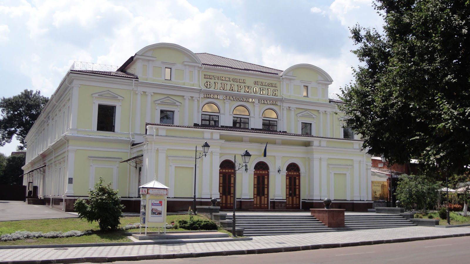 Найстаріша будівля міста, що так чи інакше має відношення до театрального життя. Зведена побудова була в 1858 році за планом архітектора Івана Штромма. Стиль будівлі має назву необароко. Після наступного речення, скоріш за все ви відчуєте гордість, адже наша філармонія – це найстаріший театр України. Свого часу тут виступала величезна кількість зірок як українського, так і всесвітнього масштабу, що всіх і не перелічиш. Концертна зала налічує 420 місць, а малий зал – 70. В 2000-х роках споруду було повністю відремонтовано, і можна з упевненістю сказати, що наша філармонія дихає на повні груди. Додамо, що в 2020-х роках тут відбувалися зйомки відомого серіалу “Кріпосна”. В стінах філармонії базуються і працюють багато житомирських колективів, такі як ансамбль “Древляни” та всесвітньо відомий хор “Орея”, а також тріо “Радана”. Знаходиться філармонія в історичному місці – поруч біля водонапірної башти, що була першою оглядовою вежею міст, а також поруч з парком барона де Шодуара.